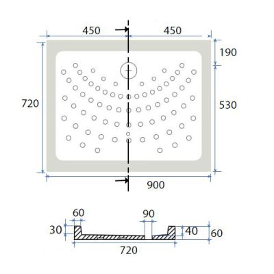 Piatto Doccia H6 Rettangolare in Ceramica Dianhydro con antiscivolo integrato e foro da 60 mm, sicurezza e design per il bagno domestico. SKU: 179-D6120